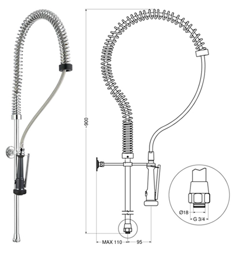 Référence 20700100 GROUPE DOUCHETTE DE PRELAVAGE SANS BEC HAUTEUR 900 MM ROBINETTERIE COMPLETE :