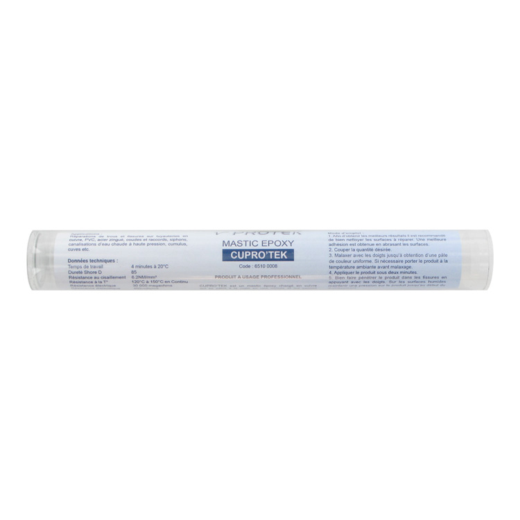 - CUPRO’TEK est un mastic époxy chargé en cuivre qui se pétrit à la main en une minute et qui permet des réparations rapides et fiables sur des tuyauteries, cuves et conteneurs en cuivre, laiton, bronze et autres métaux non ferreux.