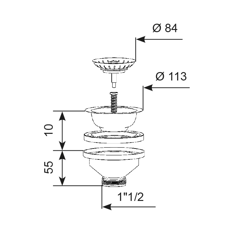 Bonde à panier manuel évier Ø 90
