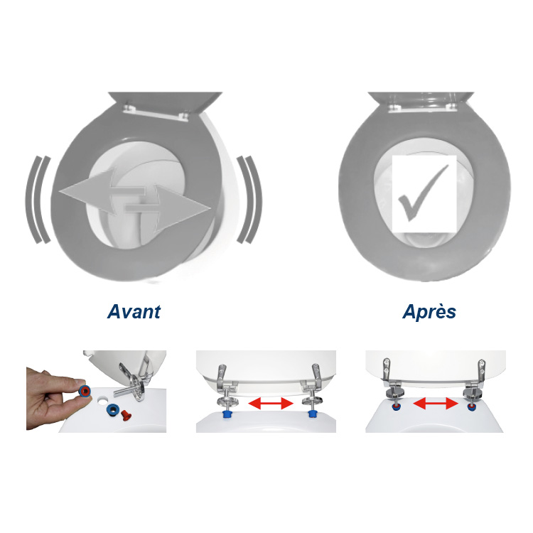 Chevilles universelles anti-déplacement pour abattant