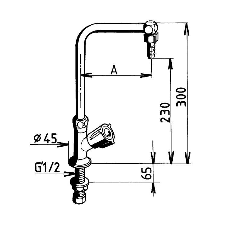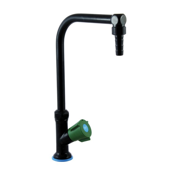 - Colonne à un robinet sur table à bec lisse fixe embout démontable Ø 10 mm.