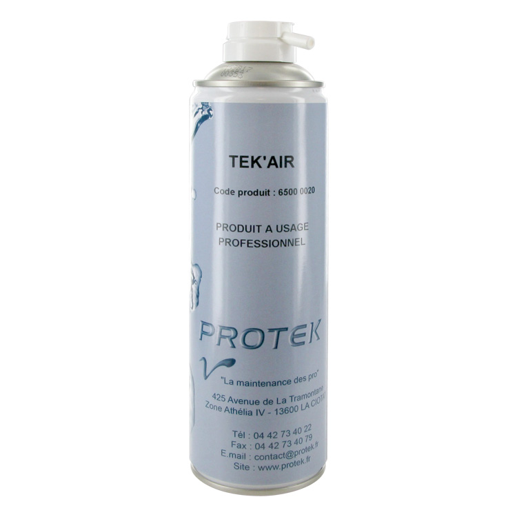 UTILISATION : TEK’AIR s’emploie comme dépoussiérant et nettoyant pour les endroits et surfaces difficiles d’accès. Ils permettent de refroidir, sécher et ôter la poussière. Il est conçu pour être utilisé dans des domaines de l’informatique, de l’optique, de la photographie, de la vidéo, et dans le domaine de la bureautique (sur machines à écrire, traitements de textes, imprimantes, divers claviers, etc…). Produit à usage professionnel.