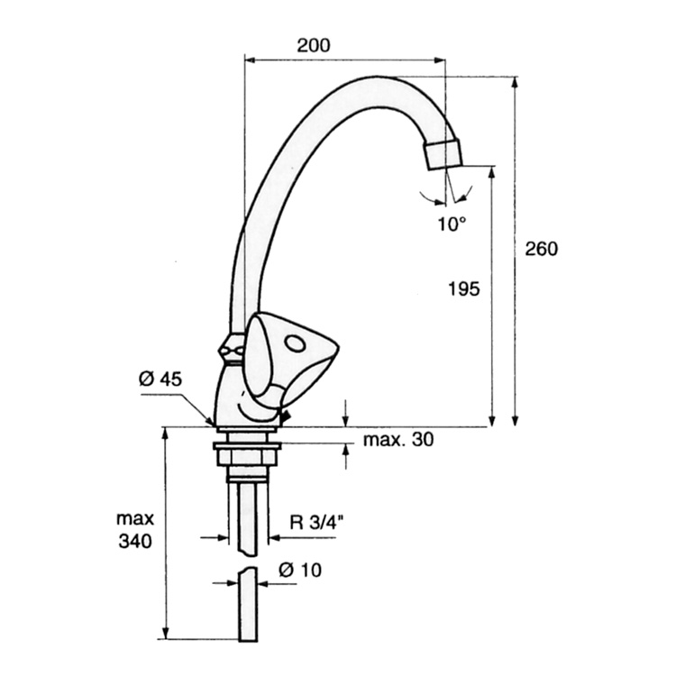 - Mélangeur monotrou d’évier NF.