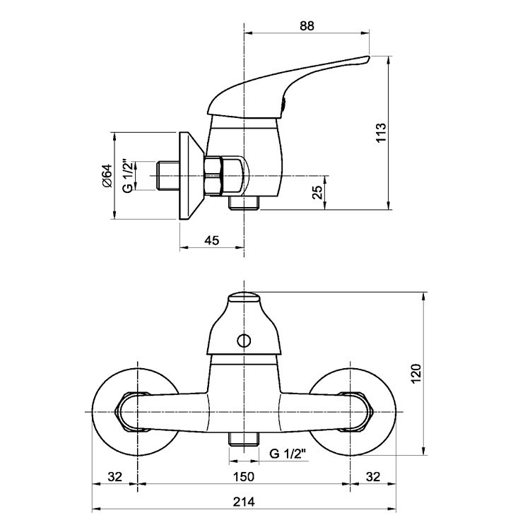 - Alimentation écrou 3/4”, sortie 1/2”.