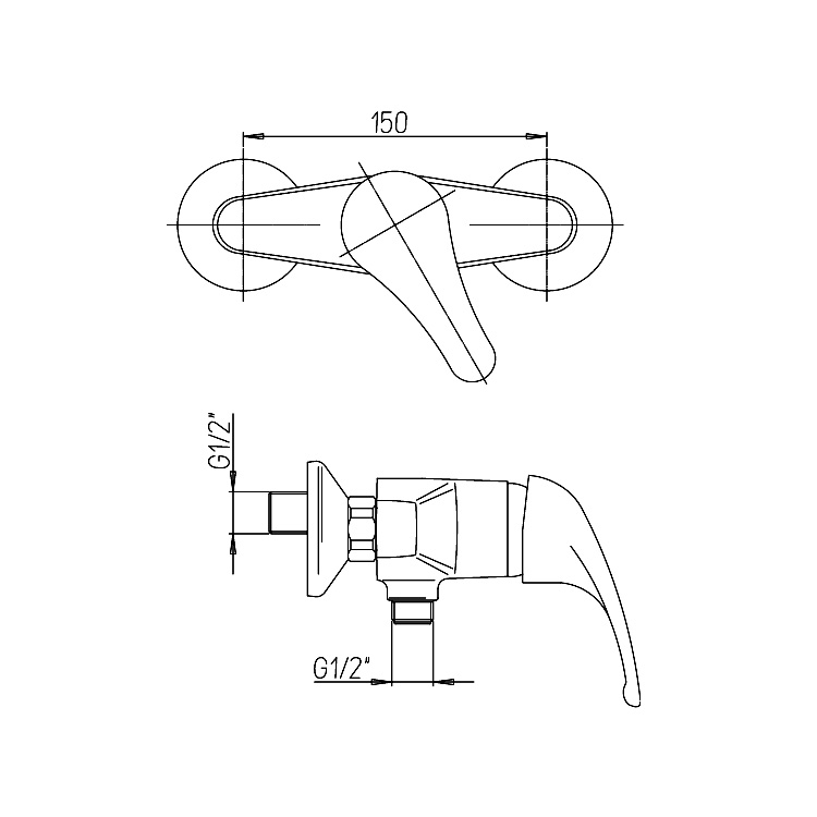 - Entraxe 150 mm avec raccords excentrés réglable de 130 à 170 mm.