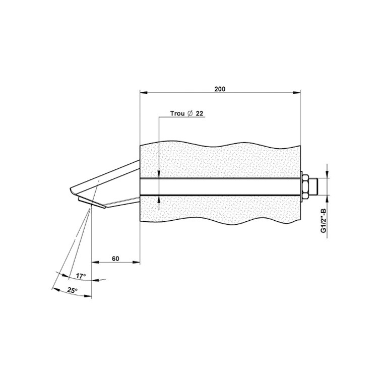Pomme de douche fixe travers cloison