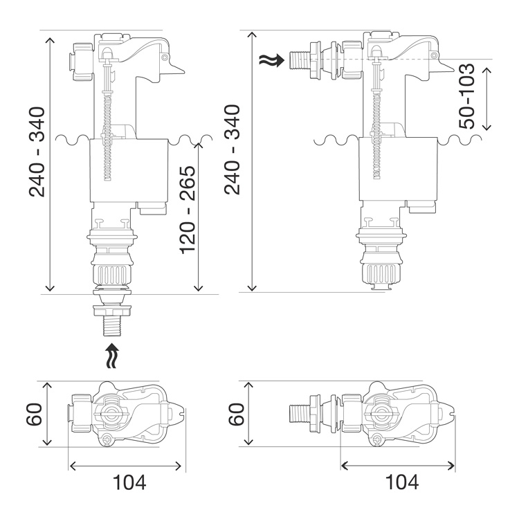 - Robinet flotteur universel arrivée latéral ou verticale.