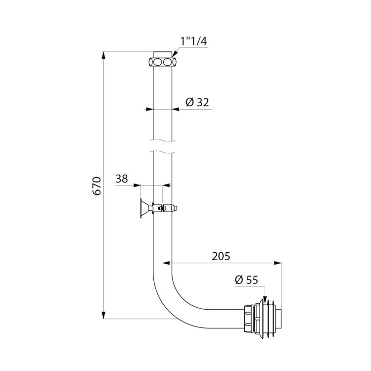 - Tube coudé Ø 32 avec écrou 1″1/4.